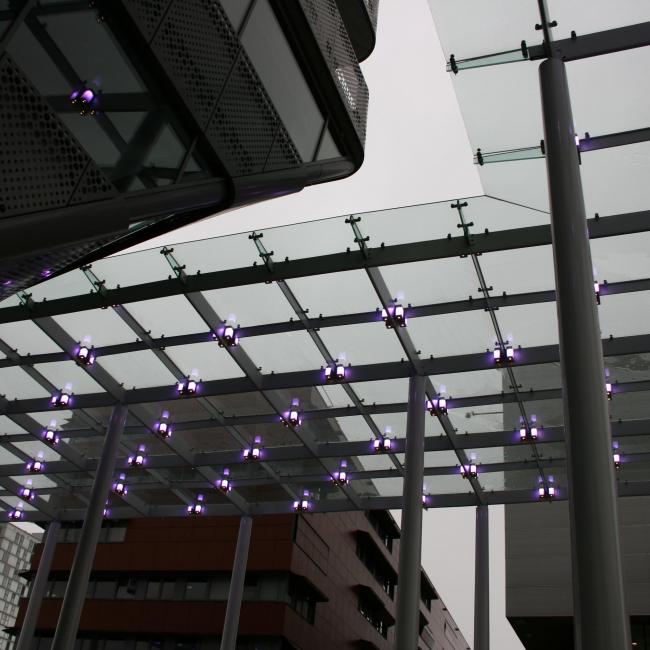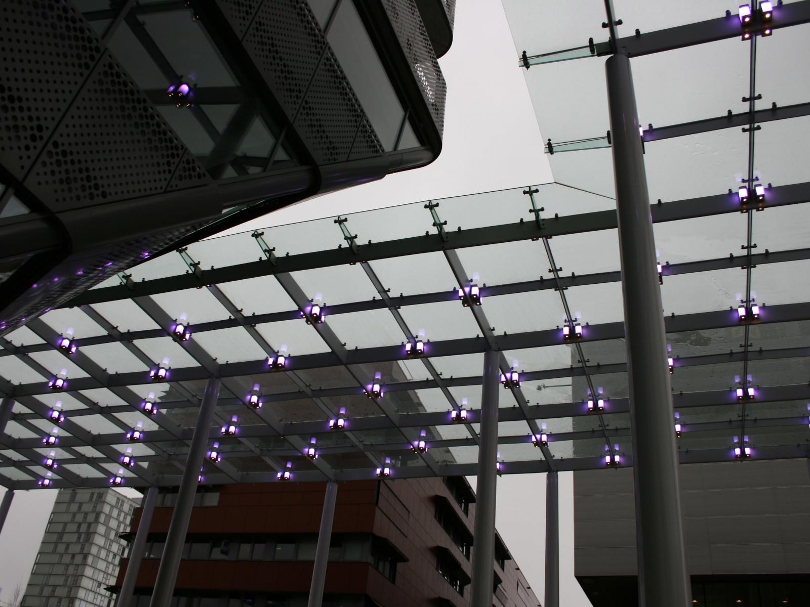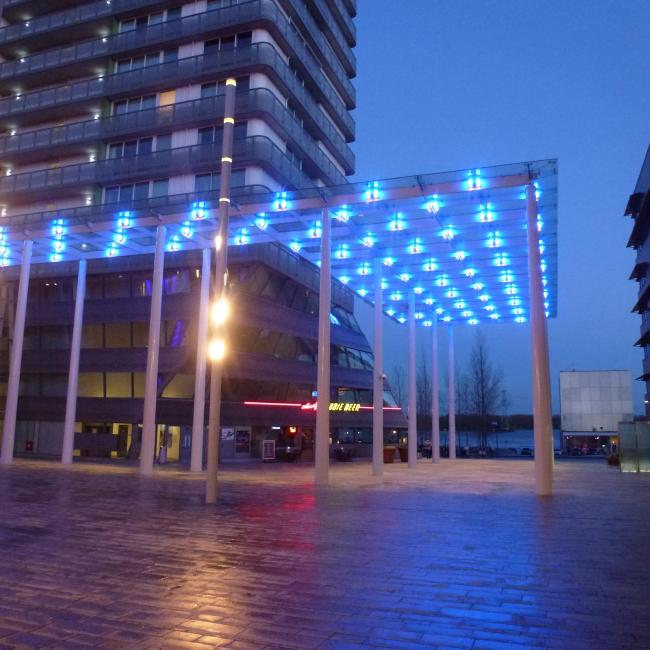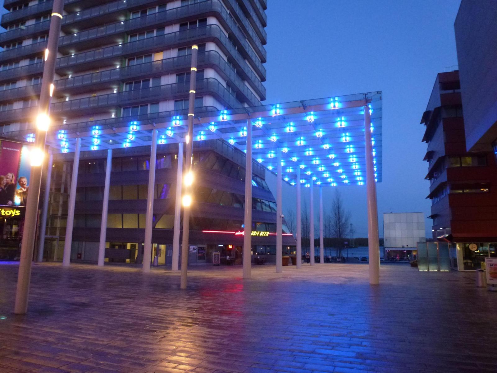 Inmiddels is de overkapping van 550 m2 op een hoogte van 11,5 meter opgeleverd. Voor de kolommen en de dakconstructie was 186 ton staal nodig, er zitten 225 glasplaten in, er zijn 1920 bouten gebruikt en het dak wordt verlicht door 280 led lampjes die steeds van kleur veranderen. Kortom, het stadshart van Almere is nu een stuk mooier en aantrekkelijker.