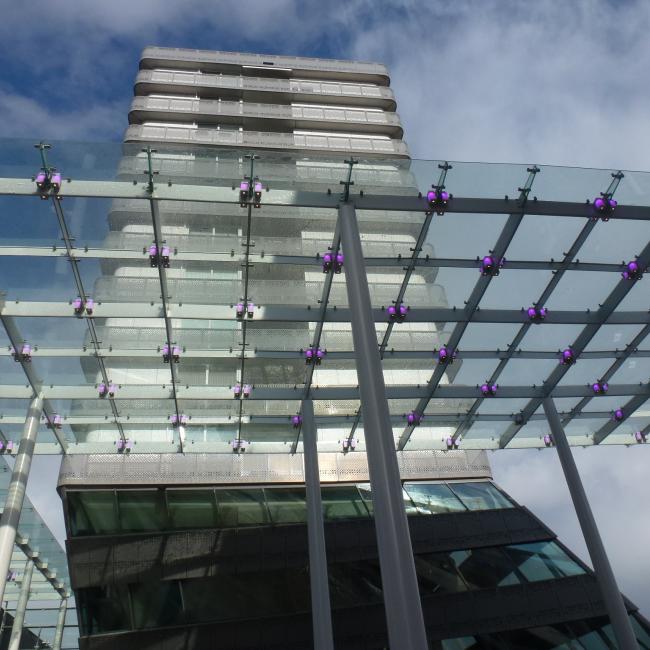 Buiting Machinebouw en Staalconstructie uit Broekland heeft de zware staalconstructies voor de glazen wand en de twee overkappingen gemaakt. De buiskolommen, dakframes en schermen (186 ton staal) zijn thermisch verzinkt door Rotocoat Heerhugowaard. Een gedeelte van het materiaal is daarna voorzien van een natlak en een gedeelte van een tweelaags poedercoating.