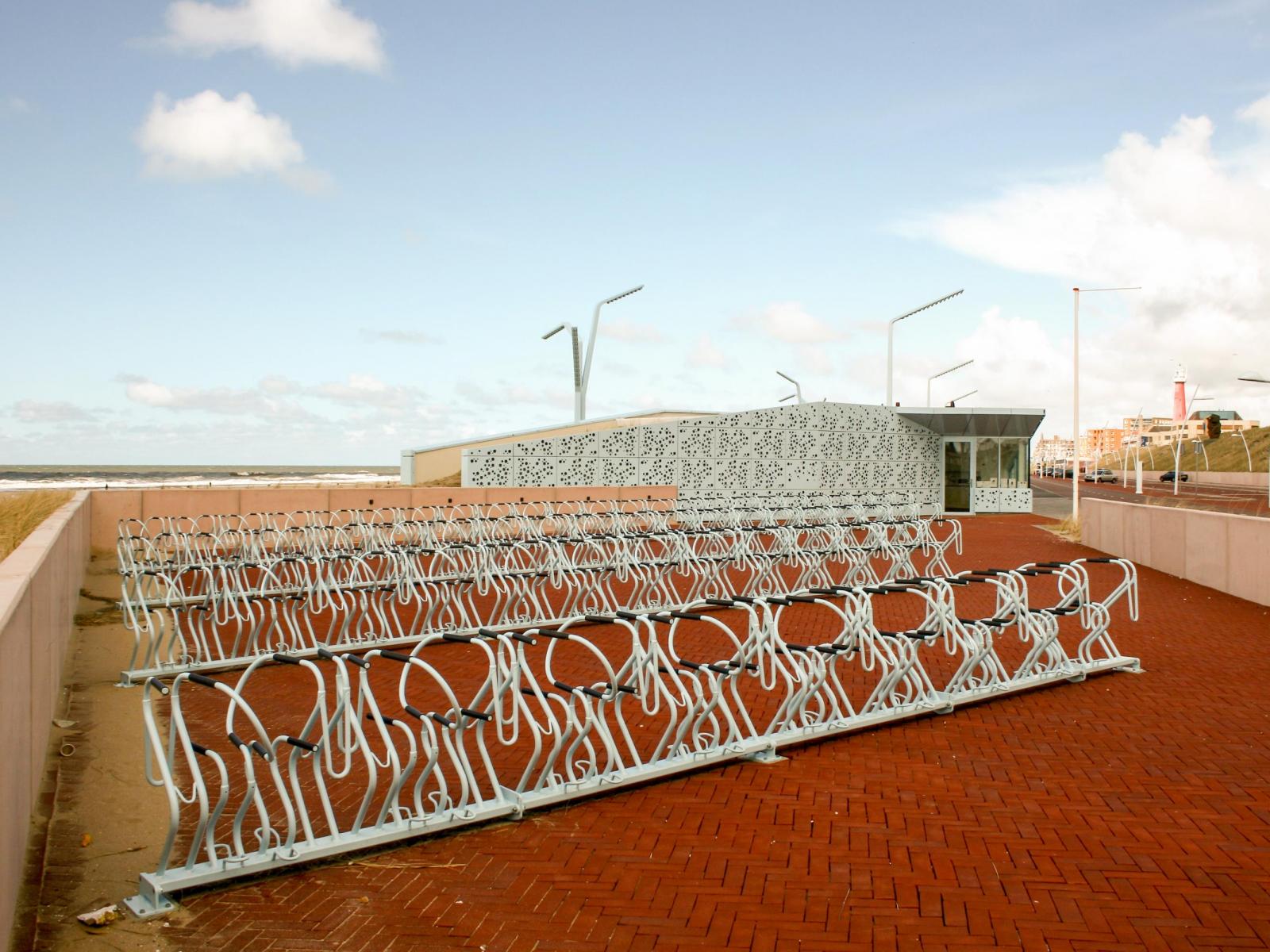 Aan de noordzijde van de haven, grenzend aan het oude vissersdorp Scheveningen, bevindt zich een breed strand waar veel toeristen en dagjesmensen komen. Er zijn veel strandtenten met voor ieder wat wils. Om ervoor te zorgen dat de strandgasten hun auto’s en fietsen kwijt kunnen, is er bij het noordelijk havenhoofd een nieuw parkeerterrein gebouwd met fietsenstalling. Deze fietsenstalling is behandeld met de Duplexroute: thermisch verzinkt door Rotocoat.
