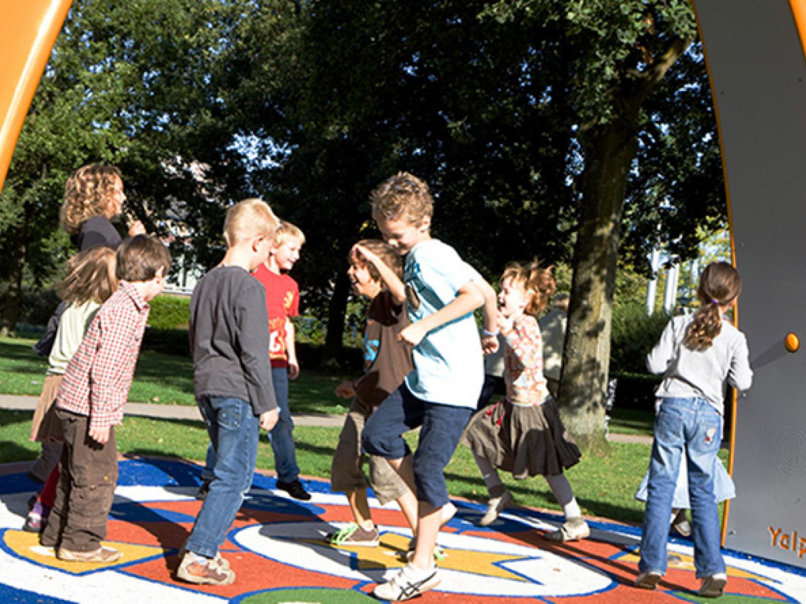 Het interactieve geluidspeeltoestel Yalp Sona is met zijn trendy vormgeving niet over het hoofd te zien. Interactie vindt plaats door te bewegen, te springen en te dansen op de gekleurde vloer. De ingebouwde camera volgt de bewegingen van de spelers en een stem geeft hen instructies. De staalconstructie en de RVS platen zijn tweelaags gepoedercoat door Rotocoat in blank aluminium en geeloranje.
