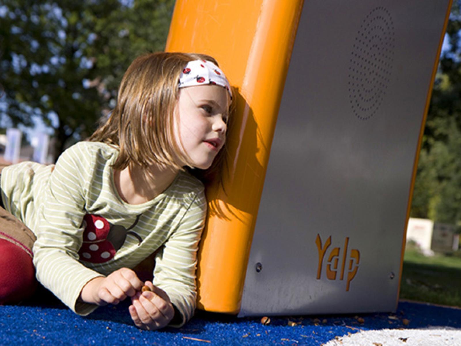 Het interactieve geluidspeeltoestel Yalp Sona zorgt voor een unieke speelervaring. De constructie en de RVS platen zijn door Rotocoat verduurzaamd.